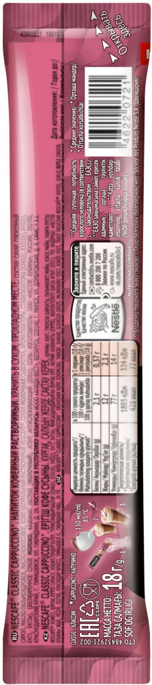 Nescafé Кофе растворимый «Classic Cappuccino»В данный момент этот товар отсутствует в продаже. Возможно, у нас найдется аналогичный или похожий товар здесь. Растворимый кофе Cappuccino — это традиционный напиток в новом удобном формате. Пакетики по 18 грамм очень легко заваривать: достаточно насыпать содержимое в чашку, добавить 200 мл горячей, но не кипящей воды и перемешать. Наслаждайтесь нежным вкусом классического капучино в любое время дня. |