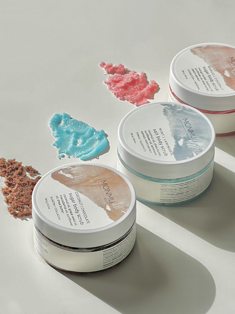 MONMU Скраб для тела солевой антицеллюлитный «Мята и ламинария»