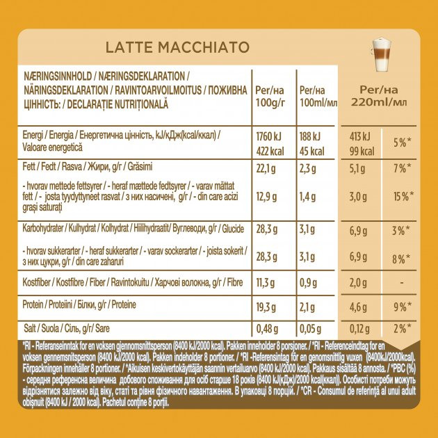 Nescafé Кофе в капсулах «Dolce Gusto Latte Macchiato»В данный момент этот товар отсутствует в продаже. Возможно, у нас найдется аналогичный или похожий товар здесь. Кофе в капсулах Dolce Gusto Latte Macchiato — изысканный, соблазнительный, непревзойденный кофе который имеет игру слоев с бархатного ароматного эспрессо до вспененного цельного молока и легкой высокой пенки. |