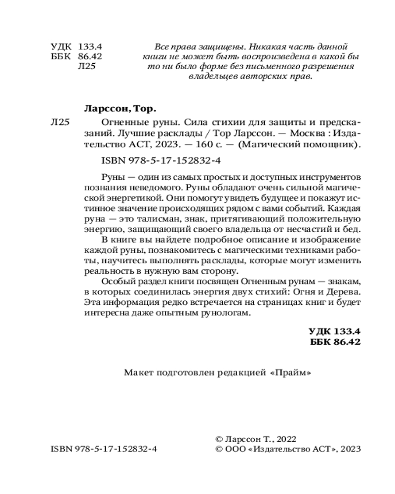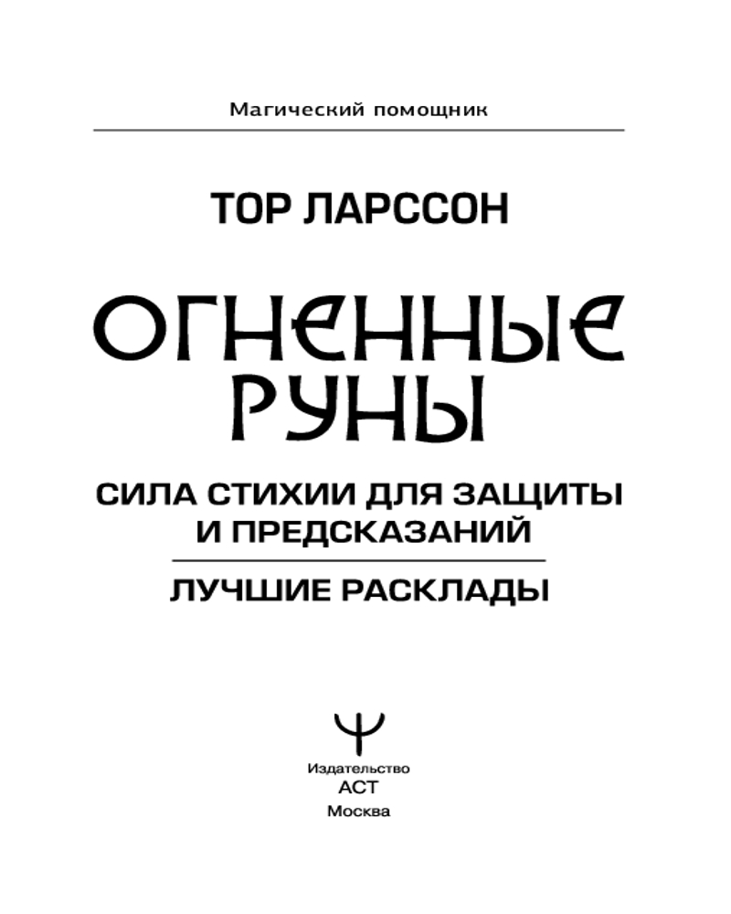 Огненные руны. Сила стихии для защиты и предсказаний. Лучшие раскладыВ данный момент этот товар отсутствует в продаже. Возможно, у нас найдется аналогичный или похожий товар здесь. Серия: Магический помощник В этой книге вы найдете подробное описание 25 скандинавских рун с иллюстрациями. Руны обладают особой магической энергией, и если вы научитесь выстраивать с ними диалог, то сможете не только получать важную информацию из прошлого, но также смотреть в будущее и заранее предотвращать события, которые могли бы пагубно повлиять на вашу жизнь. |