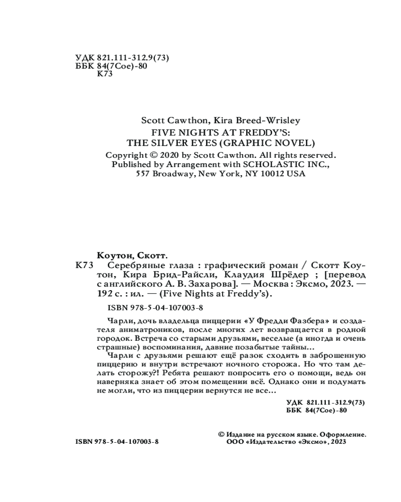 ФНАФ. Серебряные глаза. Графический романСкотт Коутон, Кира Брид-Райсли -20% +189 твердый переплет качественная печать мелованная бумага увлекательный сюжет