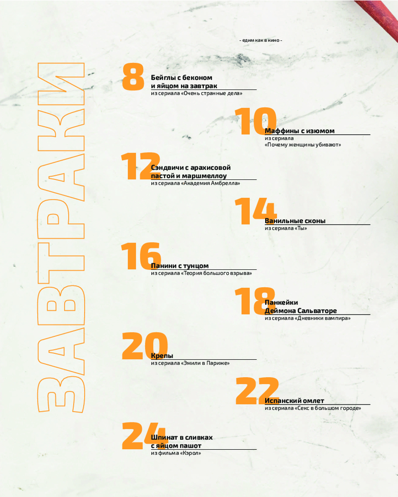 Едим как в кино. 50 рецептов из культовых фильмов и сериаловВ данный момент этот товар отсутствует в продаже. Возможно, у нас найдется аналогичный или похожий товар здесь. Серия: Кулинария. Книги по культовым вселенным. От игр до сериалов Настало время отправиться в гастрономическое путешествие по киновселенным! Как? Открываете эту книгу, ищете свой любимый фильм или сериал и готовите рецепт из него! Мария Покровская в своей дебютной книге собрала более 50 блюд из самых известных кинофильмов: «Дьявол носит Prada», «Сверхъестественное», «Мстители» и многие другие. |