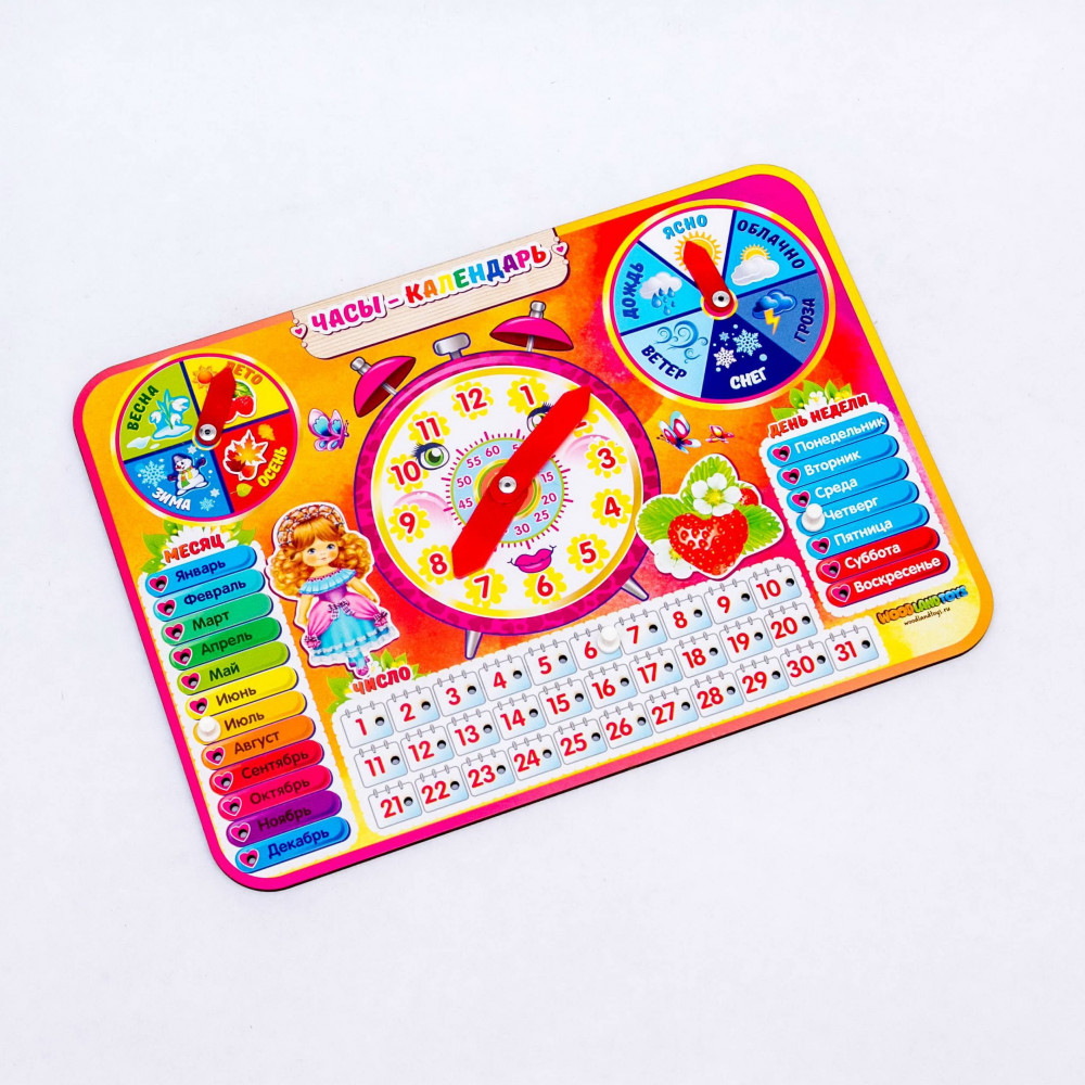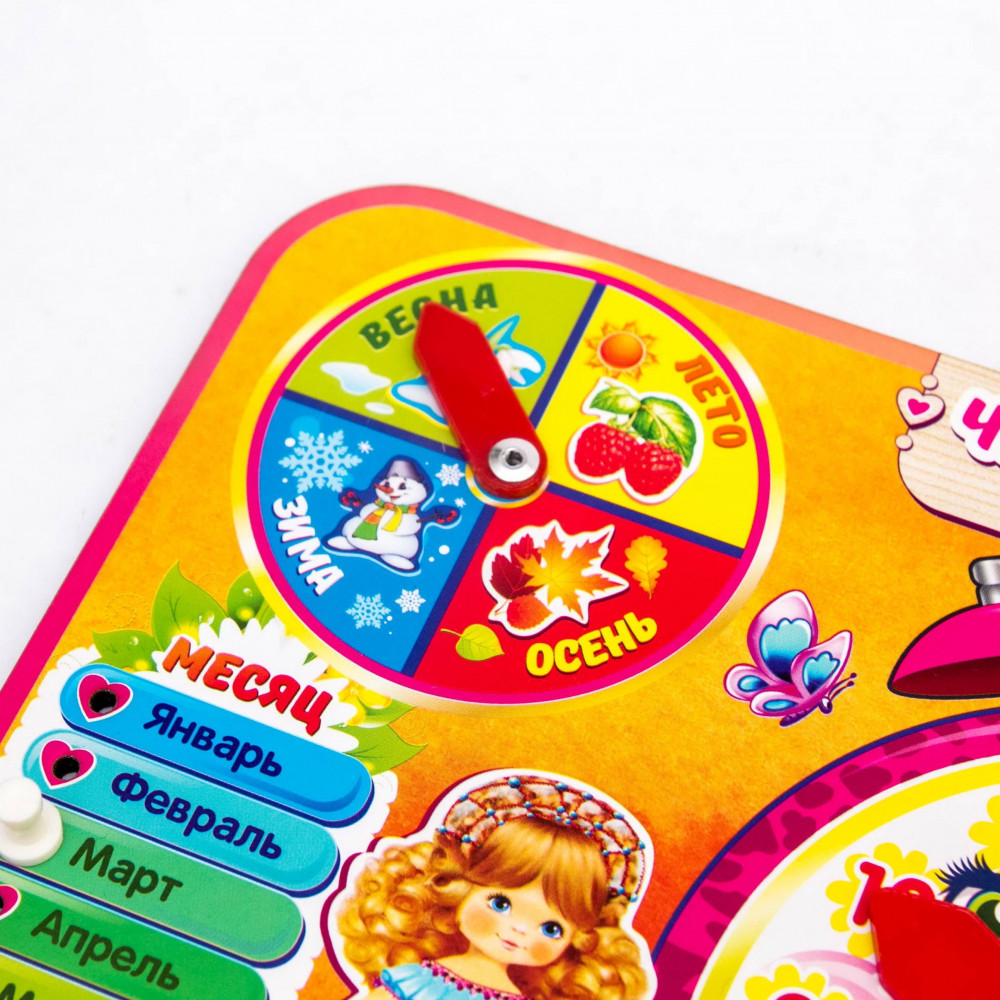 WoodLandToys Игра обучающая «Часы-календарь»В данный момент этот товар отсутствует в продаже. Возможно, у нас найдется аналогичный или похожий товар здесь. Часы-календарь — это многофункциональная развивающая игрушка для знакомства малыша с временем. Игрушка представляет собой красочный деревянный планшет с подвижными стрелками и съёмными пластиковыми деталями-указателями. Изображение разделено на несколько тематических зон, которые знакомят с временем, датой, месяцами, днями недели, временем года, погодными условиями. |