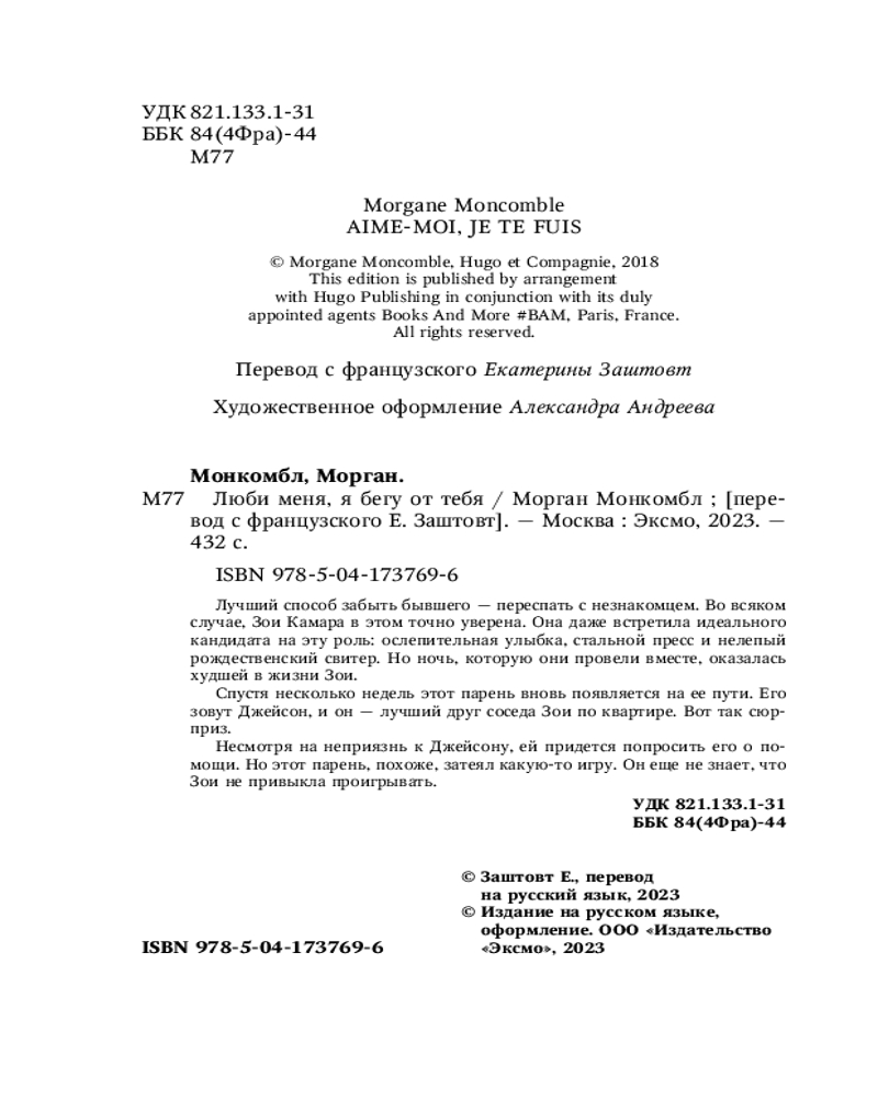 💳 Оплатить за товар можно при получении 🇰🇿 Есть бесплатная доставка по Казахстану от 1 дня 🎁 Копите бонусы с каждой покупки Серия: Young Adult. Романтические книги Морган Монкомбл «Люби меня, я бегу от тебя» — вторая часть романтической дилогии, ставшей настоящей литературной сенсацией во Франции. Зои и Джейсон из первой книги станут главными героями нового романа. |