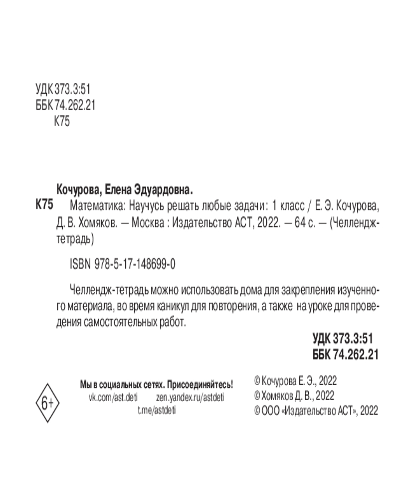 Математика. Научусь решать любые задачи. 1 классДмитрий Викторович Хомяков, Елена Эдуардовна Кочурова +8