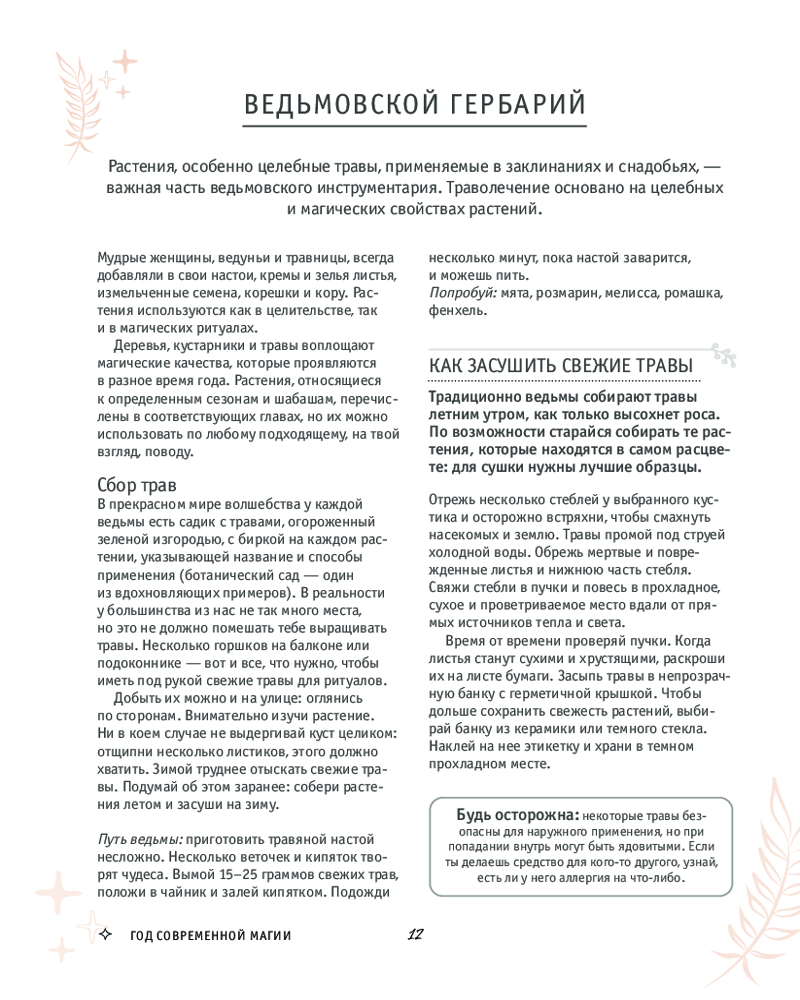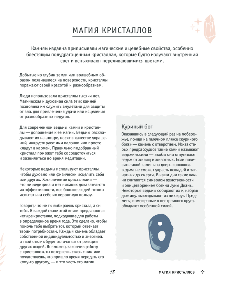 Замечательная книга! Подобных книг сейчас много, и каждый в принципе находит свою, мне пришлась по душе именно это. Всё подробно описано, довольно интересно, даже есть практическое занятие) Если вас интересует магия вокруг нас, природа, кристалы, травы, это книга подойдёт в самый раз.