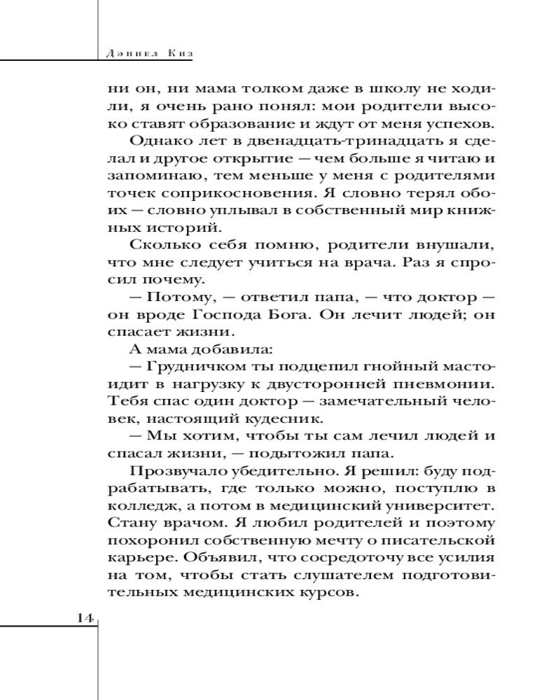 💳 Оплатить за товар можно при получении 🇰🇿 Есть бесплатная доставка по Казахстану от 1 дня 🎁 Копите бонусы с каждой покупки Серия: Магистраль. Главный тренд Дэниел Киз — знаменитый американский писатель, исследователь глубин человеческого разума, которому удалось как никому другому раскрыть перед читателем тайны личности и психологии. «Элджернон, Чарли и я» — история его жизни, творческого пути, история возникновения героев, которые теперь стали известны всему миру. Увлекательное путешествие писателя, столкнувшегося с множеством препятствий, которые стояли между ним и литературной карьерой, захватывает с первых строк. В этом романе каждый сможет узнать, какие жизненные впечатления, знакомства, случайности и привели в конце концов Киза к созданию одного из самых известных романов XX века «Цветы для Элджернона». |