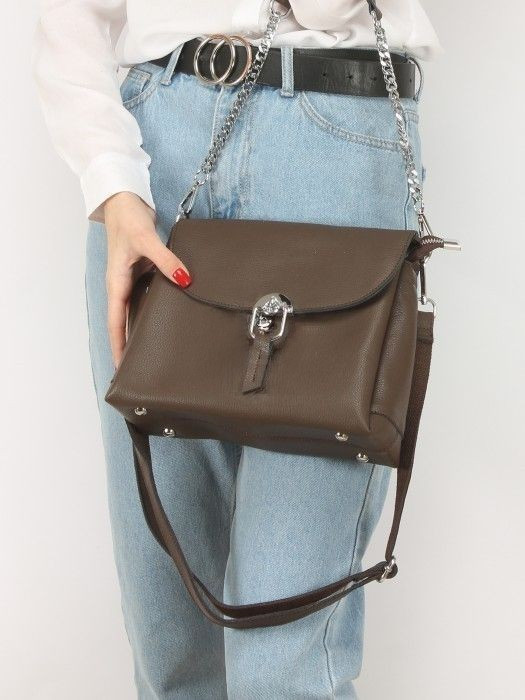 Цена отличная. На этикетке написано кожа натуральная. Сшито аккуратно, карманов много внутри, фурнитура на вид качественная, серебристого цвета. Пряжка на магните. В наличии два ремня: один длинный, регулируемый для носки кросс-боди, изнутри тканевый. Второй ремешок с цепочкой- на плечо, цепь тяжелая и плотного плетения, ремень кожаный с двух сторон.
