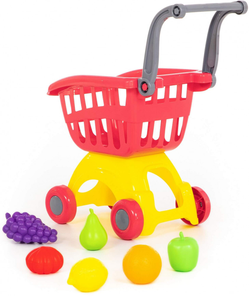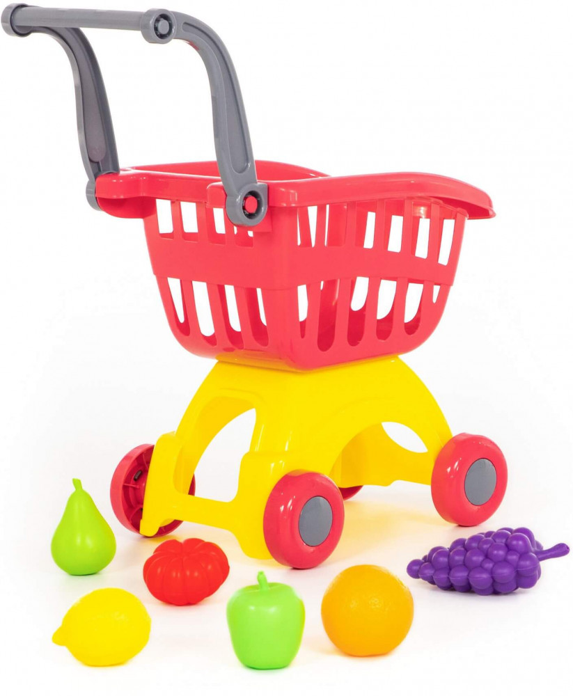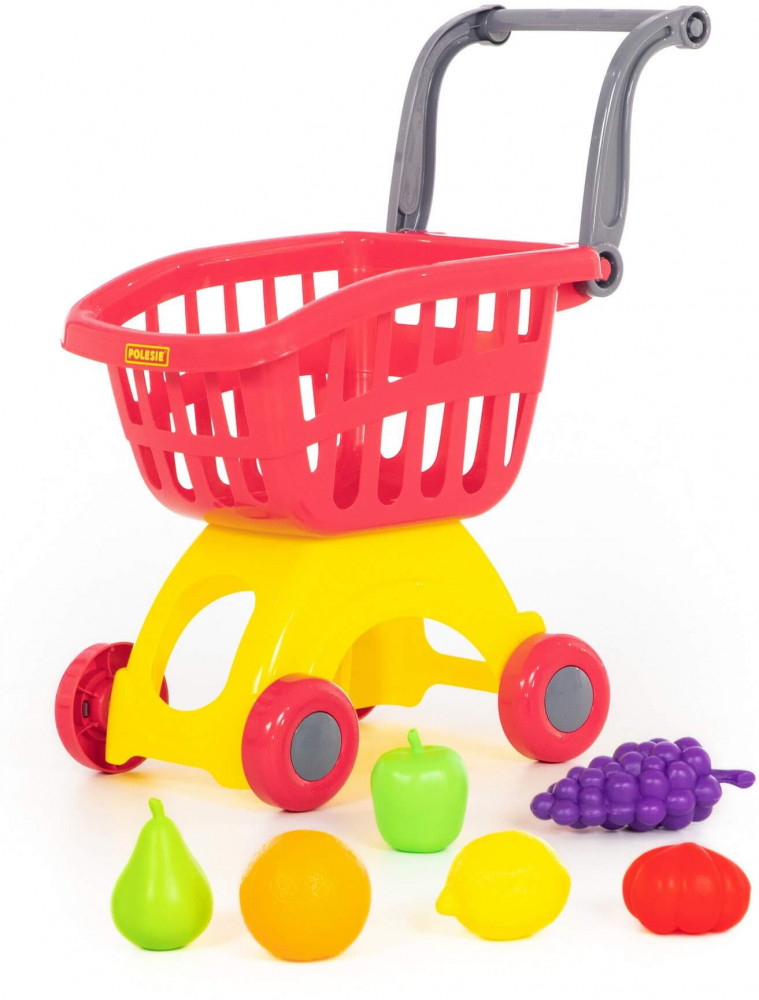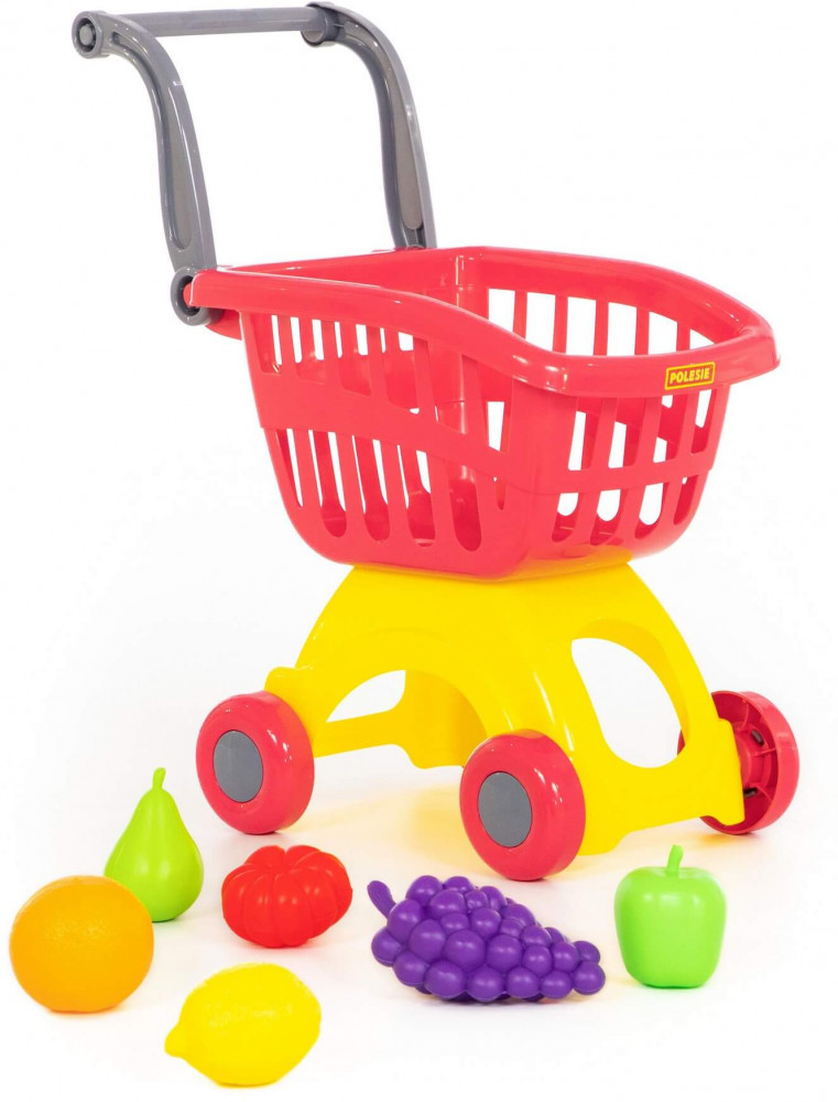 В наборе с данной тележкой входит набор продуктов № 3: имитация винограда, груши, яблока, апельсина, лимона и помидора. С таким набором игра становится ещё интереснее. Стоит отметить, что наличие тележки научит малыша собирать свои игрушки. Это во многом упростит задачу родителям!