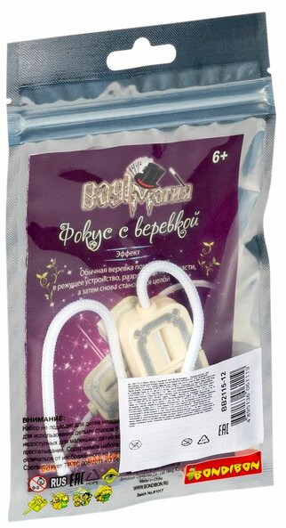 Суть фокуса: обычная веревка вставляется внутрь специального режущего устройства. При раздвигании двух половинок этого устройства в противоположные стороны веревка разрезается на две части, при этом обрезанные концы видны зрителю. При соединении двух половинок, веревка снова «срастается».