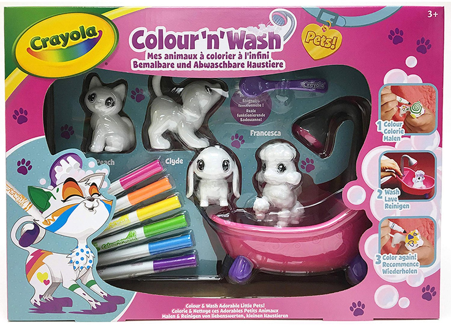 Используйте фломастеры из набора «Washimals», чтобы раскрасить и создать красивые узоры на домашних животных, превратив их в супергероев или диких животных, прежде чем отмыть их в ванночке — и снова играть!