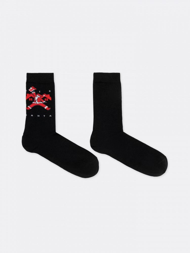 Носки мужские с рисунком на тему Нового года — отличная возможность внести разнообразие и поднять настроение. Длинные и короткие мужские носки с принтом изготовлены из гребенного хлопка — пряжи высочайшего качества, мягкой, тонкой, прочной. Натуральные волокна отлично пропускают воздух, позволяя коже дышать, и впитывают влагу, дарят ощущение комфорта в течение всего дня. Благодаря небольшому количеству эластана в составе, носки хорошо облегают стопу и сохраняют форму даже после множества стирок.