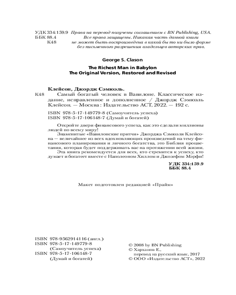 Самый богатый человек в Вавилоне. Классическое издание, исправленное и дополненное+60 полезность читабельность