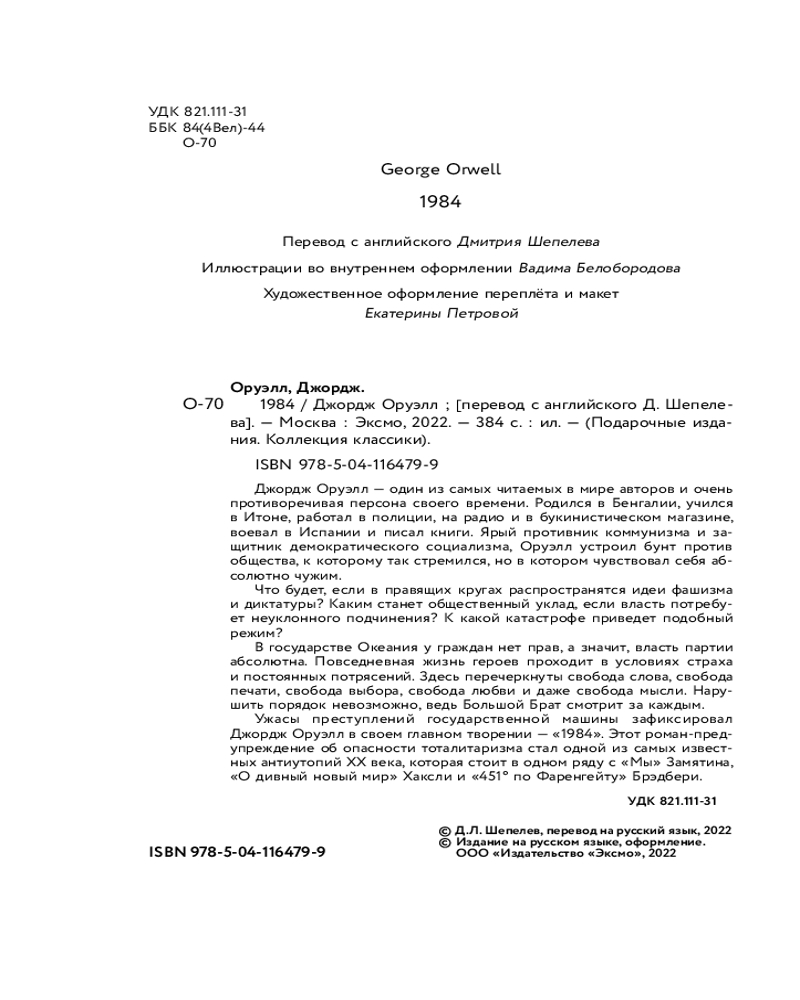 1984приятная бумага иллюстрации матовая обложка цветной срез В данный момент этот товар отсутствует в продаже. Возможно, у нас найдется аналогичный или похожий товар здесь. Серия: Подарочные издания. Коллекция классики Джордж Оруэлл — один из самых читаемых в мире авторов и очень противоречивая персона своего времени. Родился в Бенгалии, учился в Итоне, работал в полиции, на радио и в букинистическом магазине, воевал в Испании и писал книги. Ярый противник коммунизма и защитник демократического социализма, Оруэлл устроил бунт против общества, к которому так стремился, но в котором чувствовал себя абсолютно чужим. |