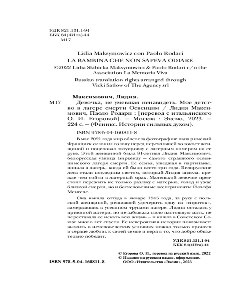 | Девочка, не умевшая ненавидеть. Мое детство в лагере смерти Освенцим Лидия Скибикка Максимович, Паоло Родари