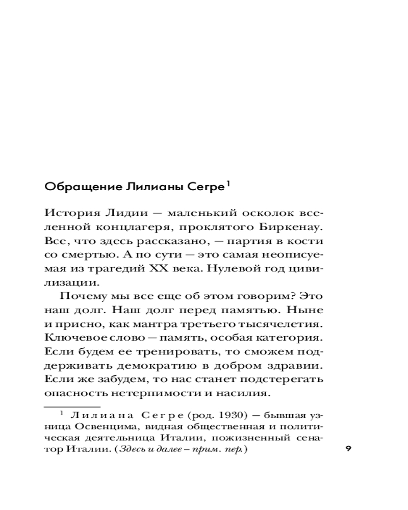 В мае 2021 года мир облетела фотография: папа римский Франциск склонил голову перед пережившей холокост женщиной и поцеловал татуировку с лагерным номером на ее руке. Этой женщиной была 81-летняя Лидия Максимович, белорусская узница Биркенау — самого страшного освенцимского лагеря смерти. Ее семья, ушедшая в партизаны, попала в лагерь, когда ей было всего три года. Белорусские леса стали последним светом, который Лидия видела, прежде чем сойти в лагерный мрак. Маленькой девочке предстоит пережить не только разлуку с матерью, голод и ужас близкой смерти, но и бесчеловечные эксперименты Йозефа Менгеле...
