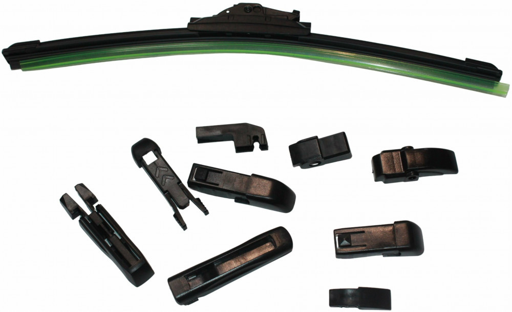 Щетка стеклоочистителя бескаркасная с 10 адаптерами. Увеличенный срок службы. Очищают в любую погоду. Работают без шума. Подходит для всех моделей. Бескаркасная конструкция позволяет равномерно и плотно прижимать лезвия стеклоочистителя к стеклу. Простота конструкции без шарниров и «качелей» обеспечивает превосходные чистящие свойства даже в зимний период.