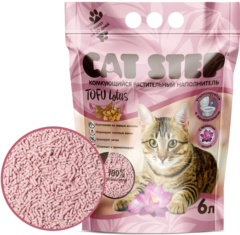 Cat Step Наполнитель для кошачьего туалета растительный комкующийся «Lotus»