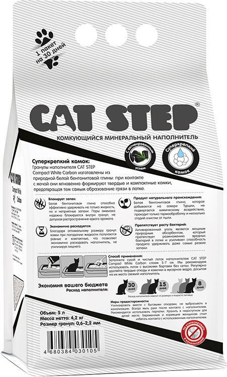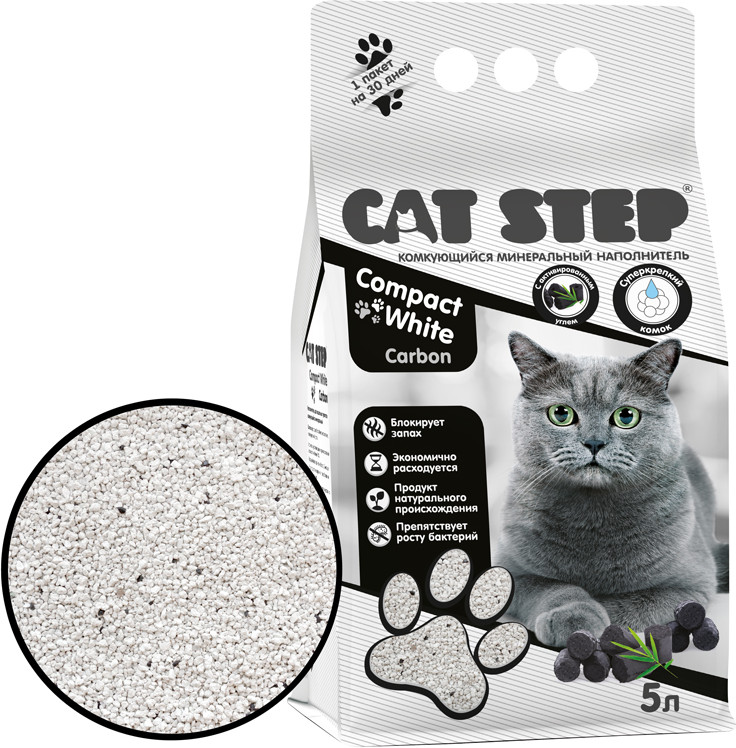 Cat Step Наполнитель для кошачьего туалета минеральный комкующийся «Carbon»