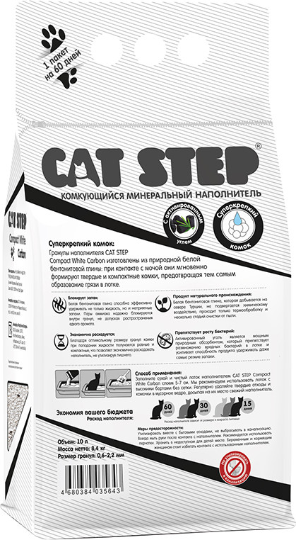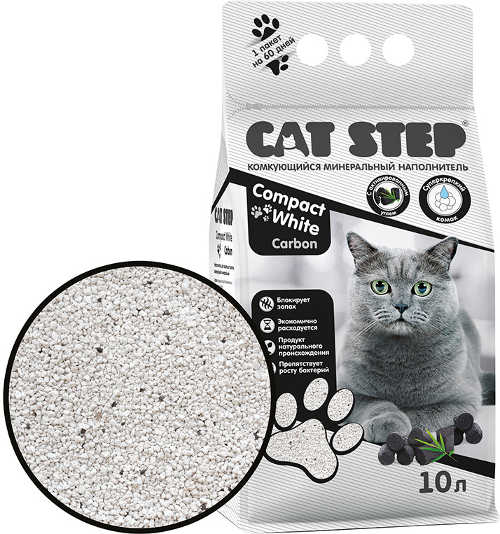 Cat Step Наполнитель для кошачьего туалета минеральный комкующийся «Carbon»