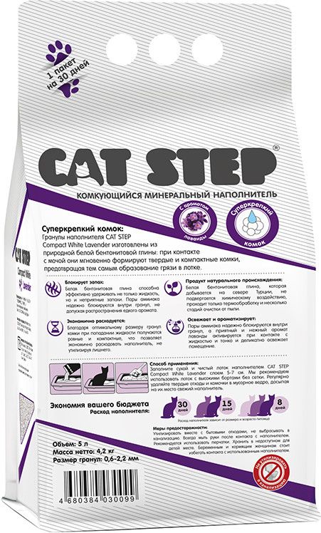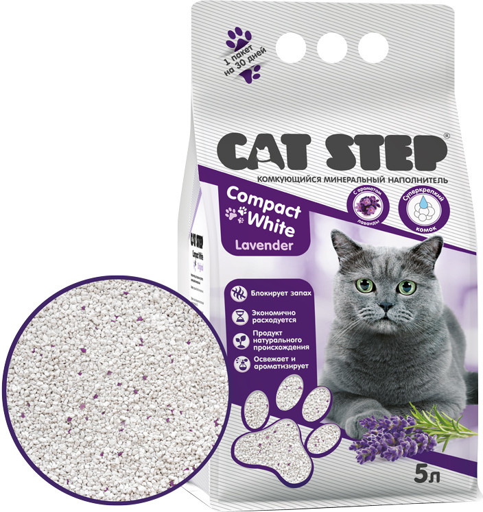 Cat Step Наполнитель для кошачьего туалета минеральный комкующийся «Lavеnder»-20% +44