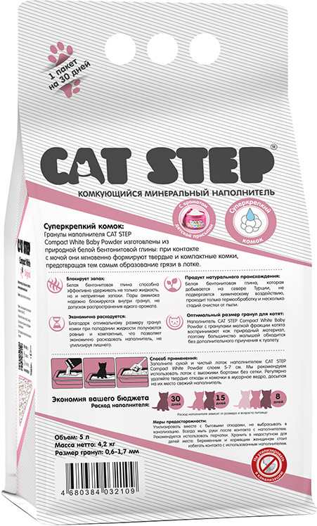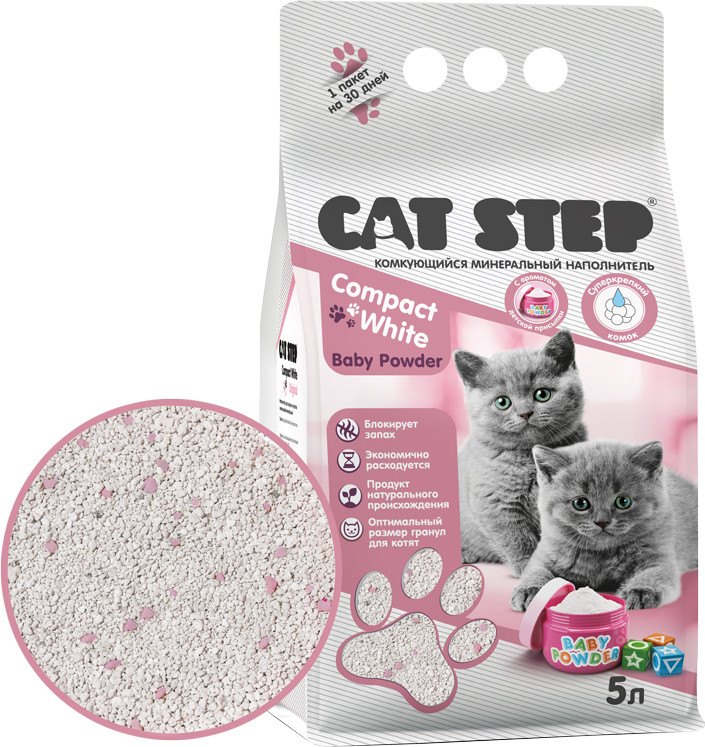 Cat Step Наполнитель для кошачьего туалета минеральный комкующийся «Baby Powder»-20% +45