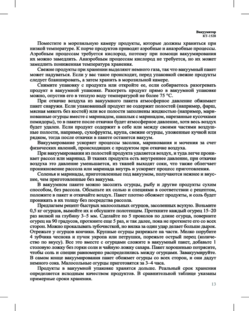 Вакуумирование ускоряет засолку, маринование и мочение. В вакууме процесс обработки продуктов такими способами значительно ускоряется. Кроме того вакуумная упаковка останавливает развитие микробов и сохраняет аппетитный внешний вид продукта.