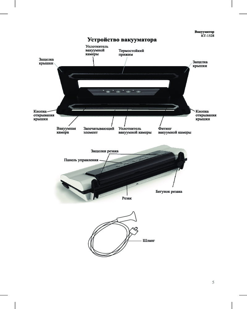 В комплектации с вакууматором идёт дополнительно шнур для откачки воздуха из контейнеров. Набор контейнеров для вакууматоров KT-1500-11 вы можете приобрести отдельно.