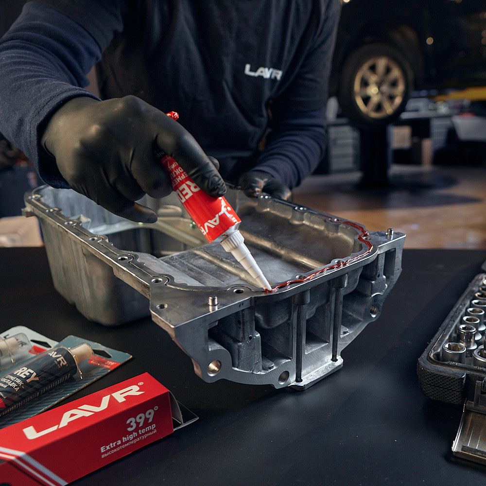 • быстро формирует надежные и герметичные прокладки выхлопной системы, клапанной крышки, впускного коллектора, помпы системы охлаждения, корпусов термостата и КПП, поддона картера;