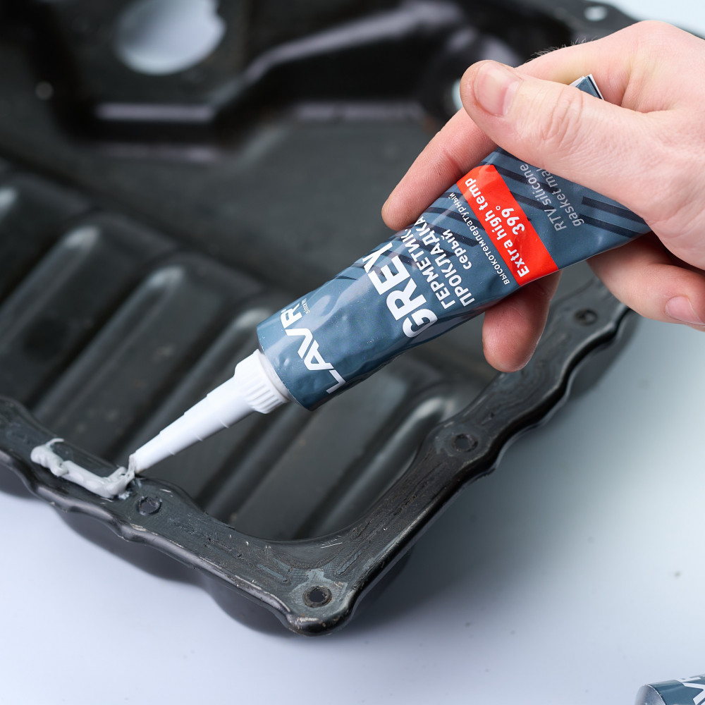 • быстро формирует надежные и герметичные прокладки выхлопной системы, клапанной крышки, впускного коллектора, помпы системы охлаждения, корпусов термостата и КПП, поддона картера;