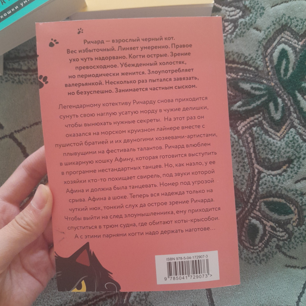 Морские КОТики. Крысобои не писают в тапки!В данный момент этот товар отсутствует в продаже. Возможно, у нас найдется аналогичный или похожий товар здесь. Серия: Пушистый детектив Ричард, взрослый черный кот. Вес избыточный. Линяет умеренно. Правое ухо чуть надорвано. Когти острые. Зрение превосходное. Убежденный холостяк, но периодически женится. Злоупотребляет валерьянкой. Несколько раз пытался завязать, но безуспешно. Занимается частным сыском. Легендарному котективу Ричарду снова приходится сунуть свою наглую усатую морду в чужие делишки, чтобы вынюхать нужные секреты. На этот раз он оказался на морском круизном лайнере вместе с пушистой братией и их двуногими хозяевами-артистами, плывущими на фестиваль талантов. Ричард влюблен в шикарную кошку Афину, которая готовится выступить в программе нестандартных танцев. Но, как назло, у ее хозяйки кто-то похищает свирель, под звуки которой Афина и должна была танцевать. Номер под угрозой срыва. Афина а шоке. Теперь вся надежда только на чуткий нюх, тонкий слух да острое зрение Ричарда. Чтобы выйти на след злоумышленника, ему приходится спуститься в трюм судна, где обитают коты-крысобои. А с этими парнями когти надо держать наготове... |