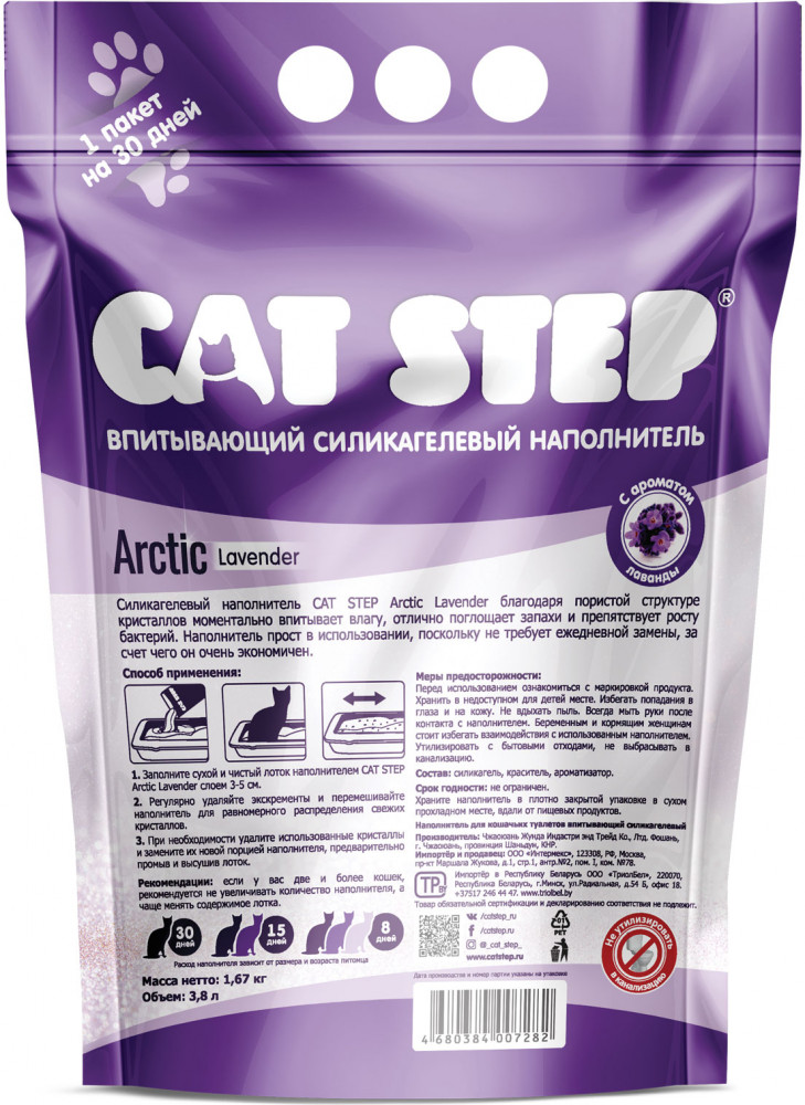 Cat Step Наполнитель для кошачьего туалета силикагелевый «Lavеnder»