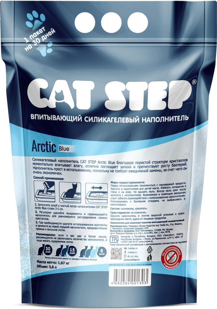 Cat Step Наполнитель для кошачьего туалета силикагелевый «Blue»
