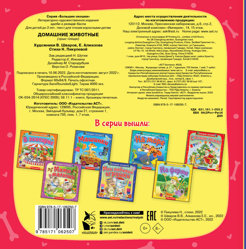 💳 Оплатить за товар можно при получении 🇰🇿 Есть бесплатная доставка по Казахстану от 1 дня 🎁 Копите бонусы с каждой покупки Серия: Большие окошки Эта книжка с большими окошками на каждом развороте станет первым лучшим другом для малыша! Забавные стихи Нины Пикулевой и весёлые картинки, а также интересные задания надолго займут ребёнка и подарят ему незабываемые впечатления. |