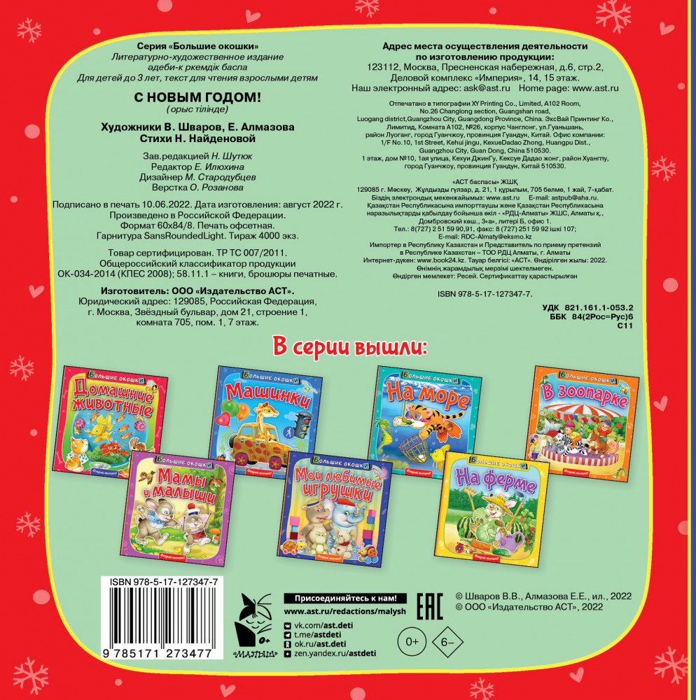 💳 Оплатить за товар можно при получении 🇰🇿 Есть бесплатная доставка по Казахстану от 1 дня 🎁 Копите бонусы с каждой покупки Серия: Большие окошки Эта книжка с большими окошками на каждом развороте станет первым лучшим другом для малыша! Новогодние стихи и весёлые картинки, а также интересные задания надолго займут ребёнка и подарят ему незабываемые впечатления. |