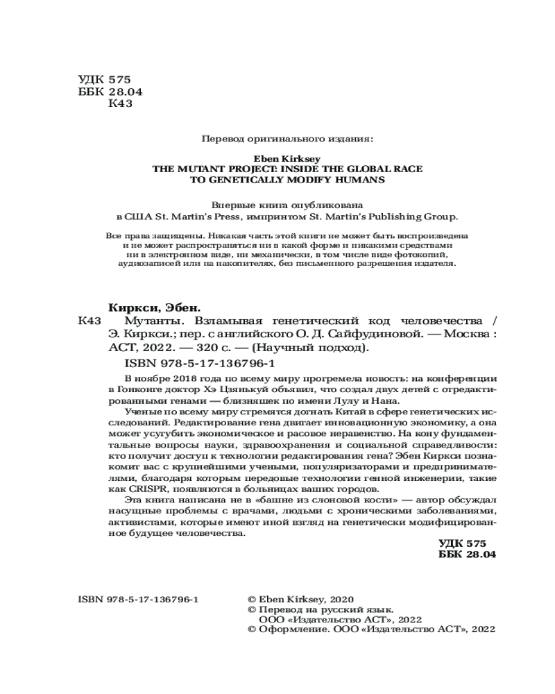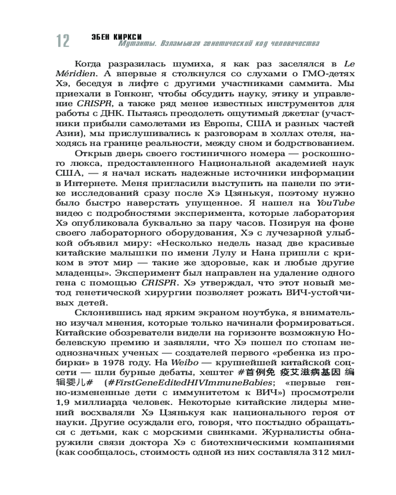 В данный момент этот товар отсутствует в продаже. Возможно, у нас найдется аналогичный или похожий товар здесь. Серия: Научный подход В ноябре 2018 года по всему миру прогремела новость: на конференции в Гонконге доктор Хэ Цзянькуй объявил, что создал двух детей с отредактированными генами — близняшек по имени Лулу и Нана.