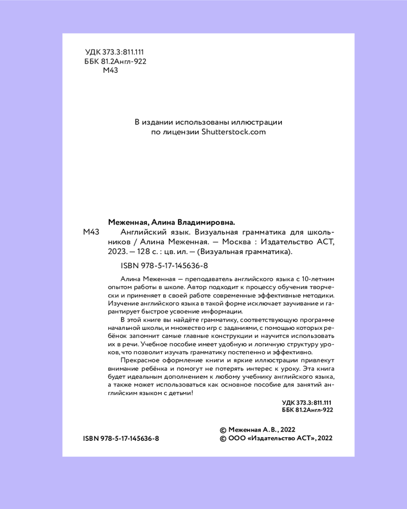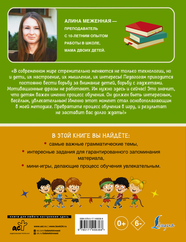💳 Оплатить за товар можно при получении 🇰🇿 Есть бесплатная доставка по Казахстану от 1 дня 🎁 Копите бонусы с каждой покупки Серия: Визуальная грамматика (цвет) Алина Меженная — преподаватель английского языка с 10-летним опытом работы в школе. Автор подходит к процессу обучения творчески и применяет в своей работе современные эффективные методики. Изучение английского языка в такой форме исключает заучивание и гарантирует быстрое усвоение информации. |