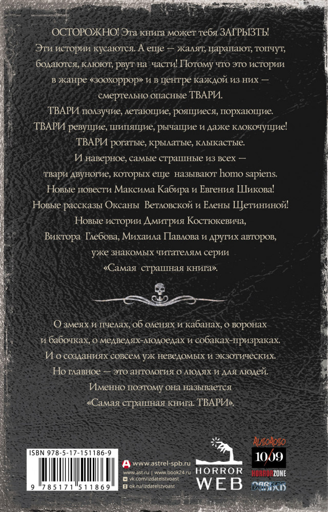 Но главное — это антология о людях и для людей. Именно поэтому она называется «Самая страшная книга. Твари». |