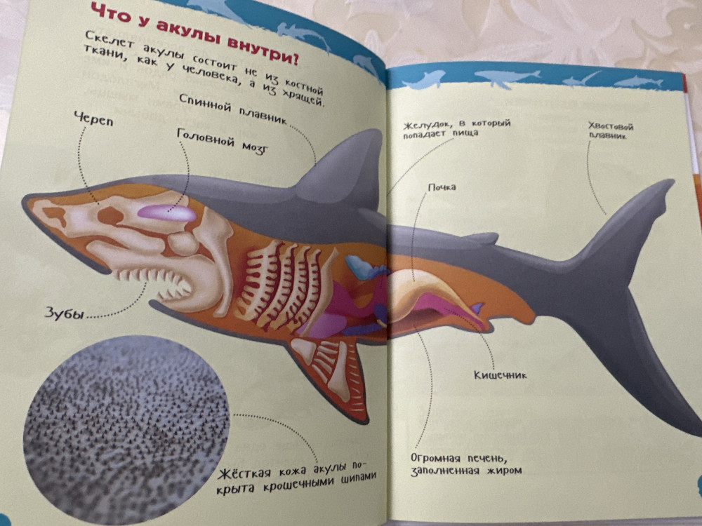 Сын читает, задаёт ещё вопросы по тексту, про акул, про её зубы... Очень познавательная!