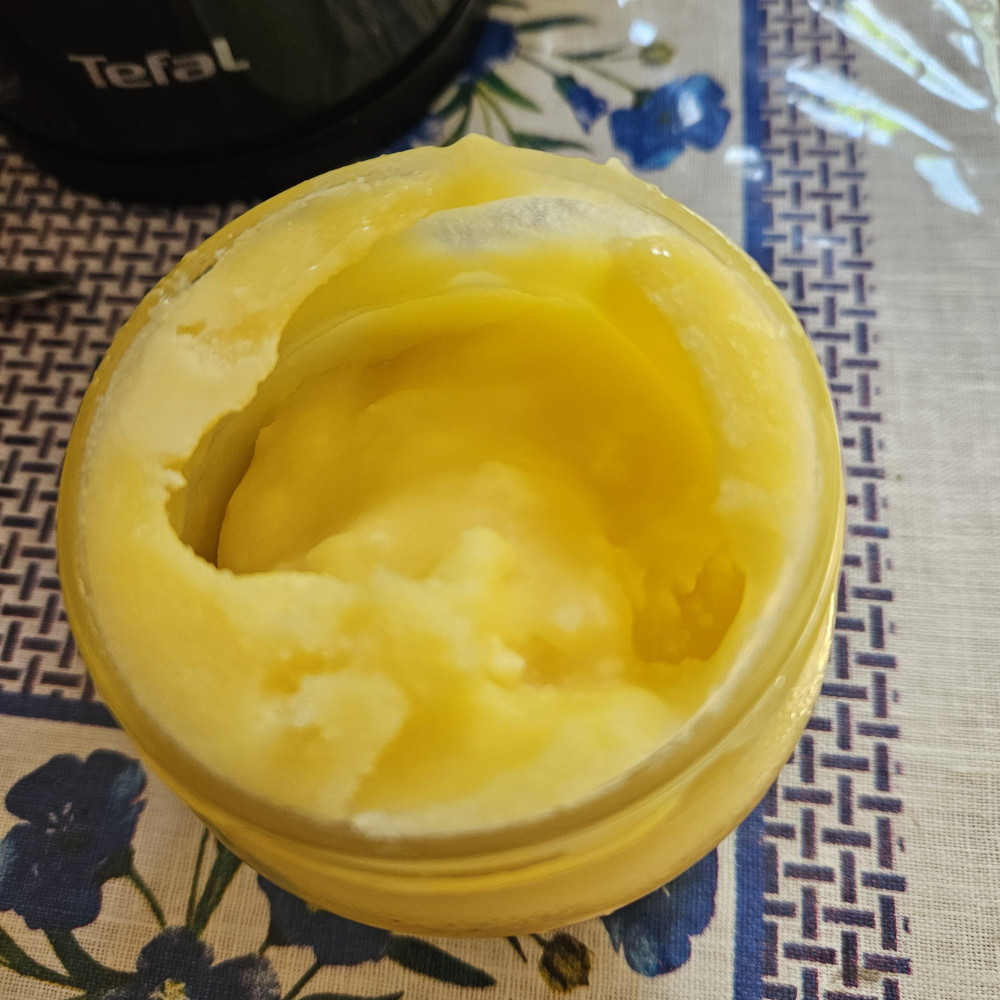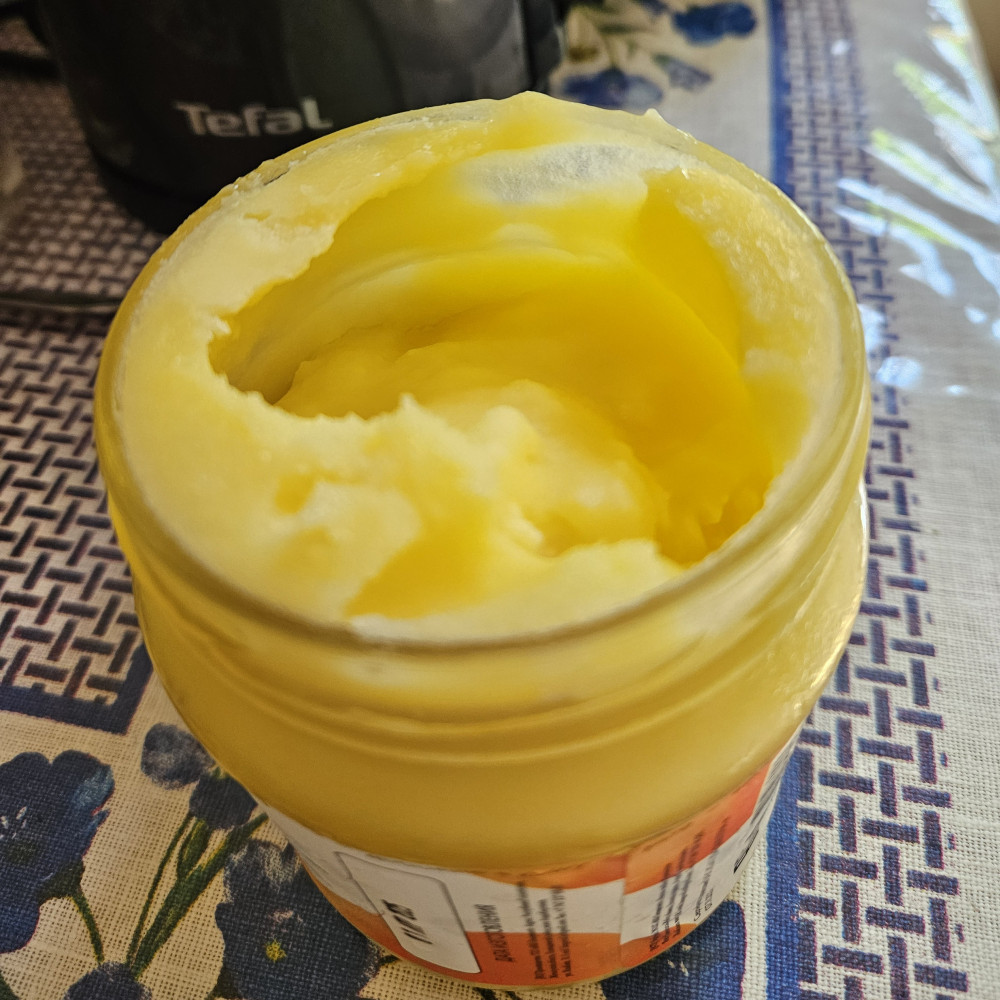 к сожалению это не чистое масло гхи, так как стояло в холодильнике и совершенно не застыло. Разочарование