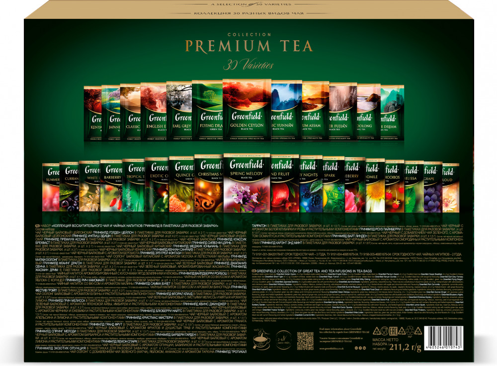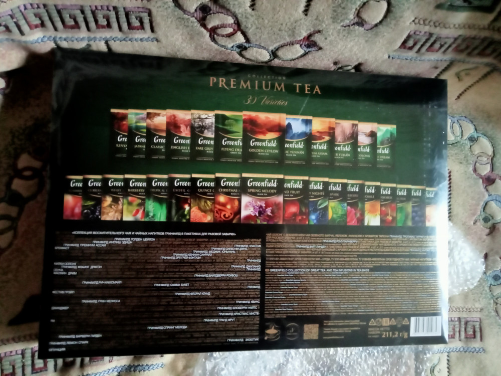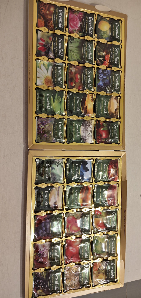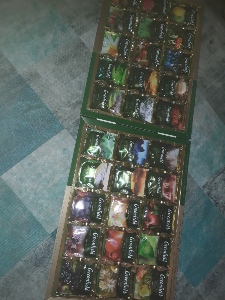 красивая упаковка, большое разнообразие вкусов, в подарок просто отличный вариант, коробка довольна большая, когда открываешь глаза разбегаются от множества чайных пакетиков, в каждой ячейке по 4 пакетика, ну и вкусы, можно каждый раз выбирать , что хочешь сегодня выпить с каким вкусом. Мои дети тоже с удовольствием открывают и выбирают на вкус. Гринфильд одна из наших любимых марок и особенно наша семья предпочитает черный чай, кенийский, чай мятный с мелиссой, но в этом наборе есть даже те вкусы, которые редко найдешь в магазинах, но опять-таки вкусы травяные на любителя, кому-то могут и не зайти, а кому-то наоборот. Но, для подарка и для себя очень даже отличный набор.