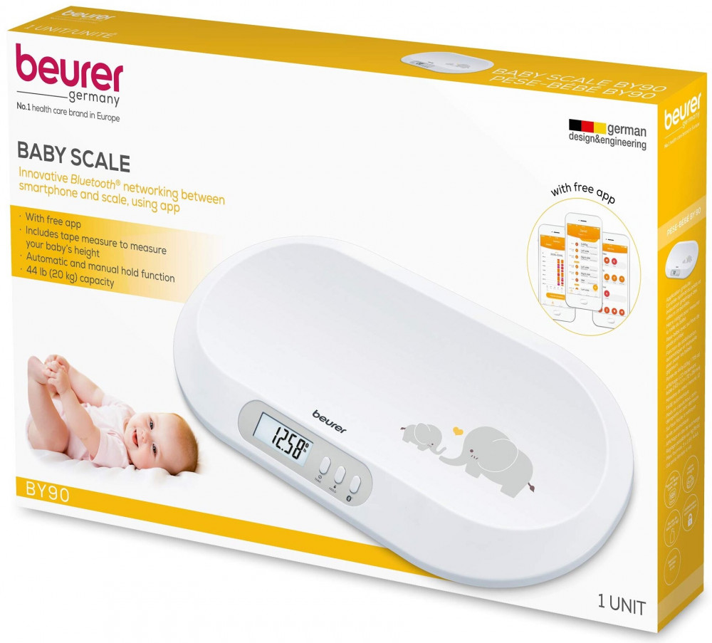 Весы для младенцев BY90 отлично подойдут для контроля за весом малыша. Вместе с бесплатным приложением beurer BabyCare (язык интерфейса — английский) у Вас всегда будут под рукой результаты измерений веса ребёнка. Весы также подойдут для активных малышей, так как обладают функцией фиксации измерения веса.