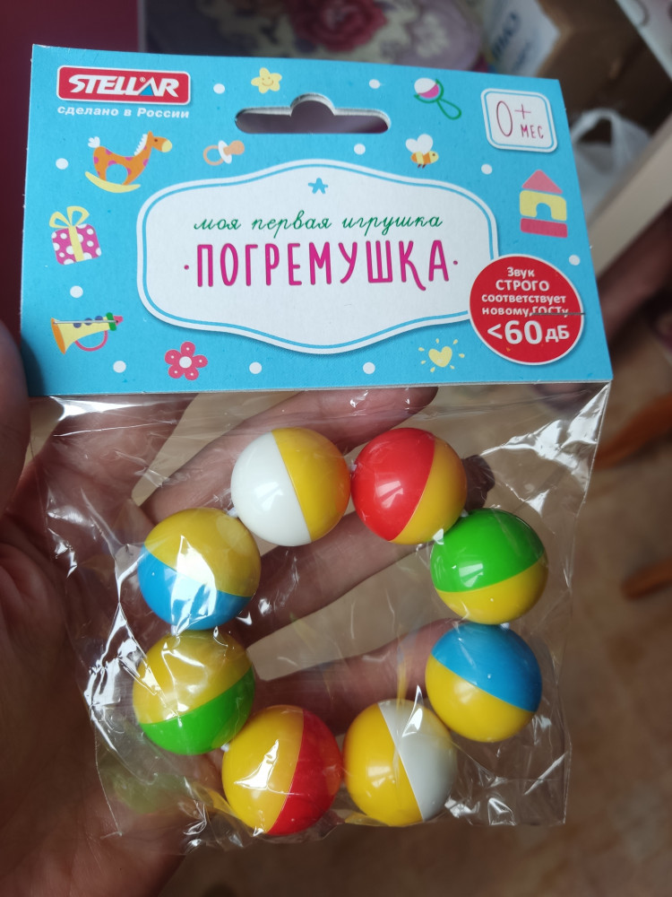 Российская погремушка выполненная по ГОСТу, что очень важно для безопасности когда покупаешь для ребёнка. Яркая, не громкая.
