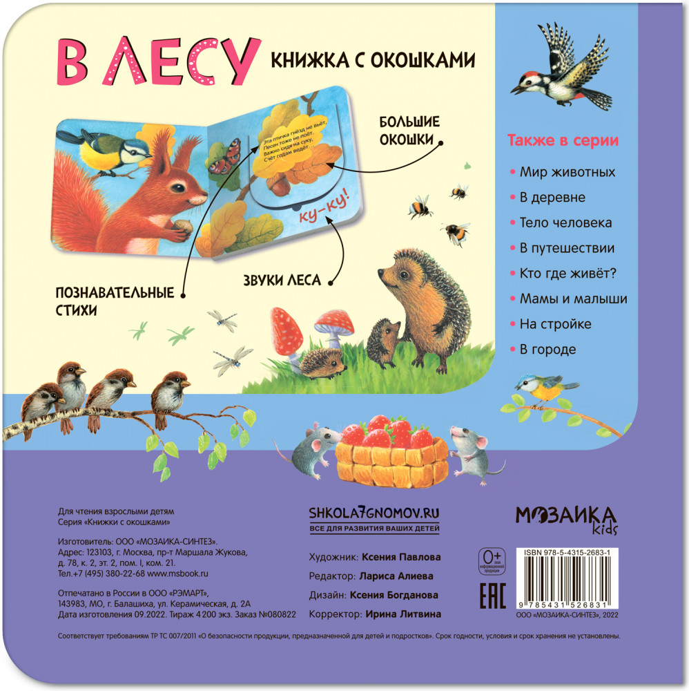 Книжки с окошками «В лесу»В данный момент этот товар отсутствует в продаже. Возможно, у нас найдется аналогичный или похожий товар здесь. Серия: Книжки с окошками Книжка с окошками «В лесу» познакомит ребенка с обитателями леса. На каждом развороте — загадка и одно большое окошко: под ними прячется картинка-отгадка. Детализированные иллюстрации Ксении Павловой интересно рассматривать даже самым юным читателям. А звукоподражание поможет ребенку в развитии речи и слуха. |