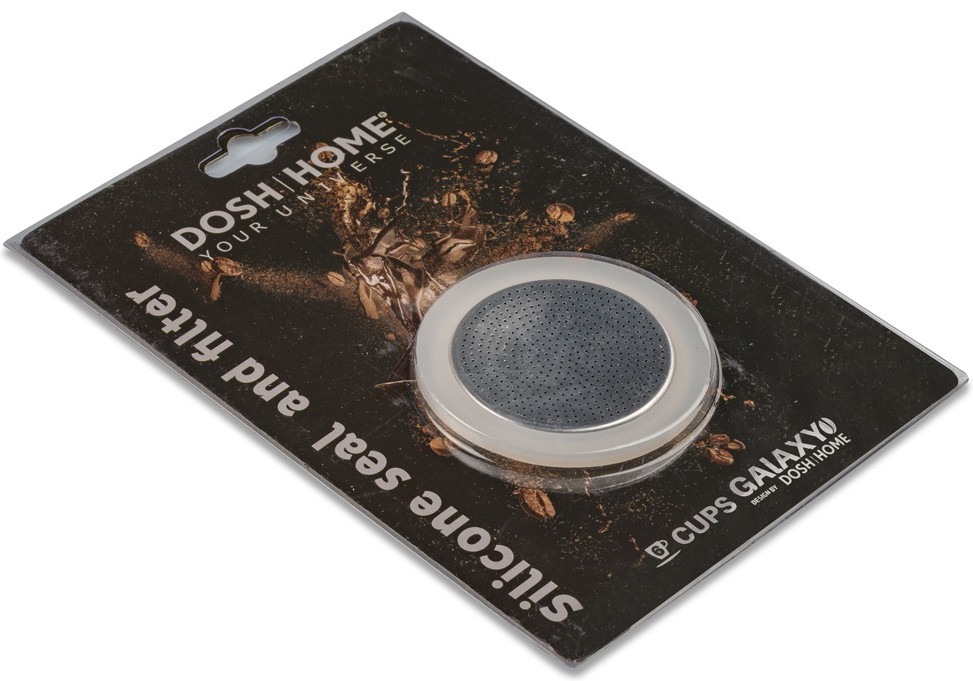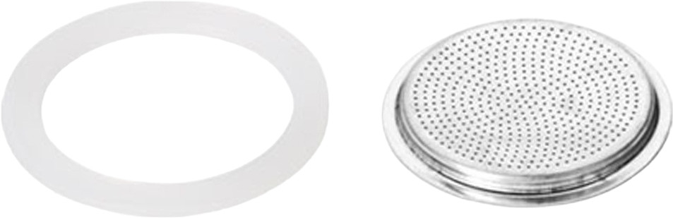 Запасные части для кофеварки «Galaxia». Прокладка изготовлена из силикона, фильтр из безопасного алюминия. Использовать только для кофеварки «Galaxia» соответствующего размера. Нельзя мыть в посудомоечной машине.