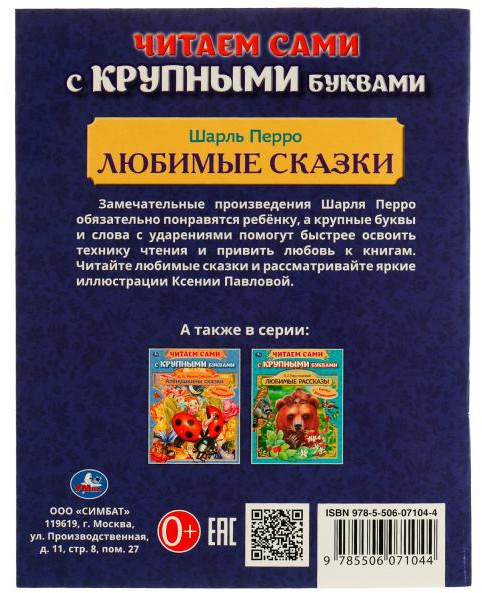 💳 Оплатить за товар можно при получении 🇰🇿 Есть бесплатная доставка по Казахстану от 1 дня 🎁 Копите бонусы с каждой покупки Книга с крупными буквами «Ш. Перро. Любимые сказки» из серии «Читаем сами» ТМ «УМка» — отличный вариант для увлекательного самостоятельного чтения: |