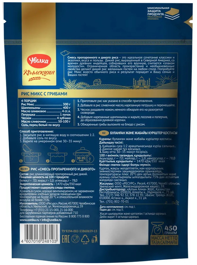 Увелка Рис «Микс»В данный момент этот товар отсутствует в продаже. Возможно, у нас найдется аналогичный или похожий товар здесь. Серия: Коллекция Смесь пропаренного и дикого риса — это идеальное сочетание классики и экзотики, вкуса и пользы. Дикий рис, выращенный в Северной Америке, со времен древних индейцев, собиравших его вручную, считается «злаком молодости». Ограниченная область произрастания и необыкновенные свойства делают дикий рис желанным гостем на любом столе. Попробуйте рис «Микс» вместо обычного риса, и результат порадует и Вашу семью, и Ваших гостей! |