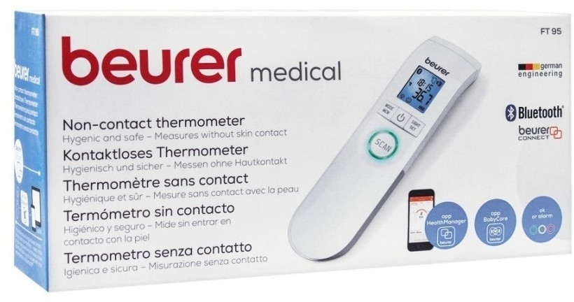 Бесконтактный термометр Beurer FT 95 для удобного мониторинга температуры. Полученные данные можно переносить в приложения Beurer HealthManager и Beurer BabyCare по Bluetooth®, чтобы контролировать динамику.