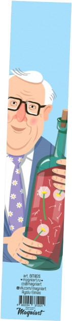 Отличная плотная закладка из картона с изображением любимого писателя Рэя Брэдбери и любимого произведения "Вино из одуванчиков".