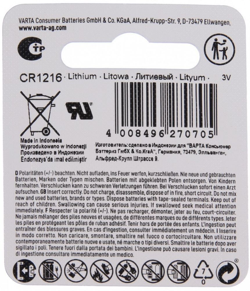 Varta Батарейка литиевая CR1216-20% +42